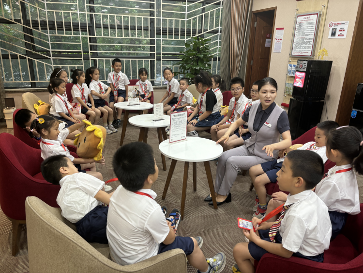 小朋友們來到二樓會議室,銀行市場主管向大家科普了簡單的理財知識,引導(dǎo)他們樹立正確的金錢觀,教授他們基本的消費(fèi)技能,現(xiàn)場的小朋友們聚精會神,聽得津津有味。